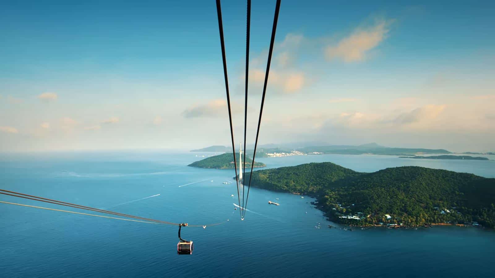 Cáp treo Hòn Thơm Phú Quốc có chiều dài 7899,9m xuất phát từ ga An Thới, qua đảo Hòn Dừa, Hòn Rỏi và kết thúc ở Hòn Thơm, Phú Quốc. Di chuyển trên cáp treo, du khách không chỉ được trải nghiệm chuyến du ngoạn kỳ thú trên không trung mà còn được chiêm ngưỡng thiên nhiên hoang sơ, hùng vĩ, khám phá trọn vẹn vẻ đẹp tựa thiên đường của mây trời Nam Đảo Ngọc.