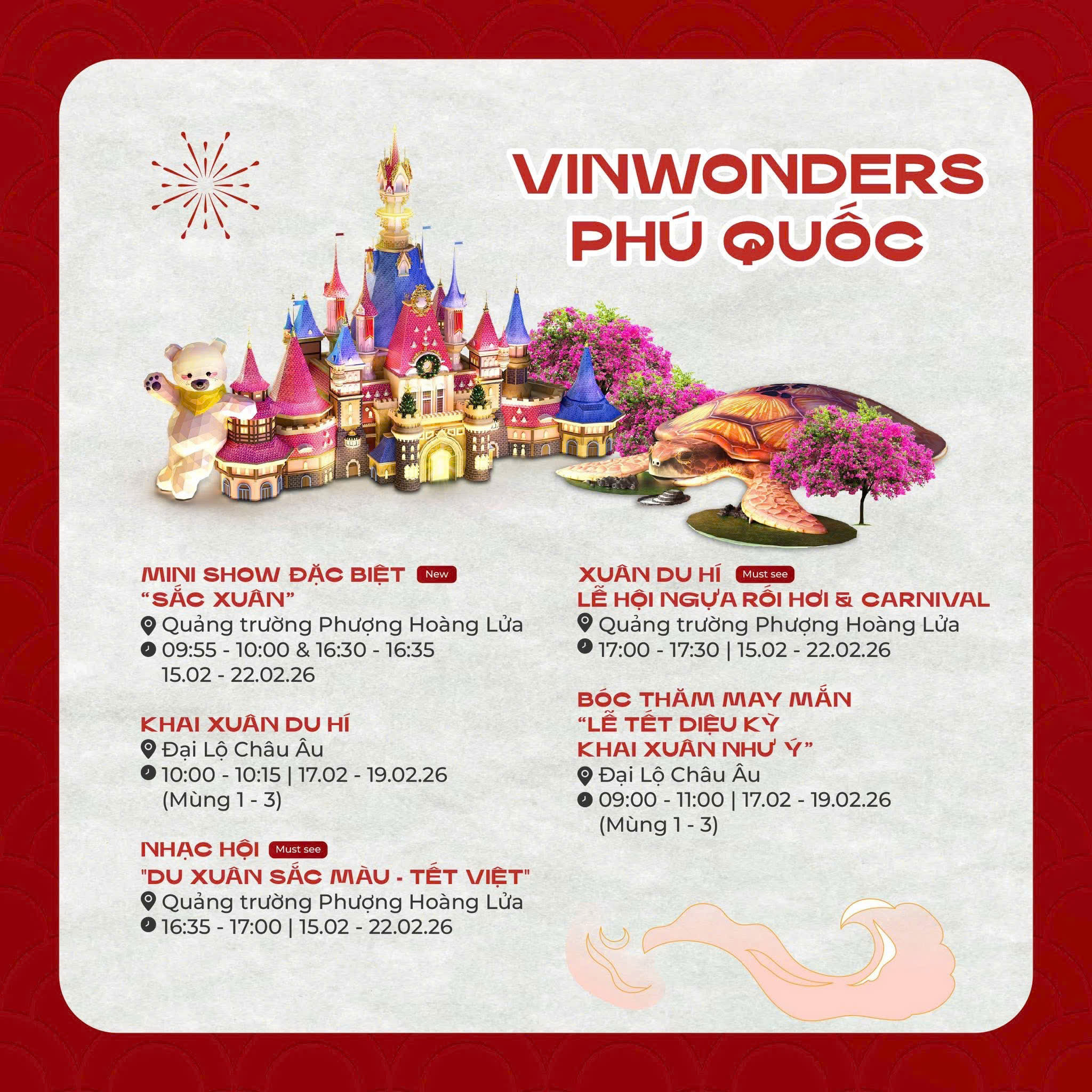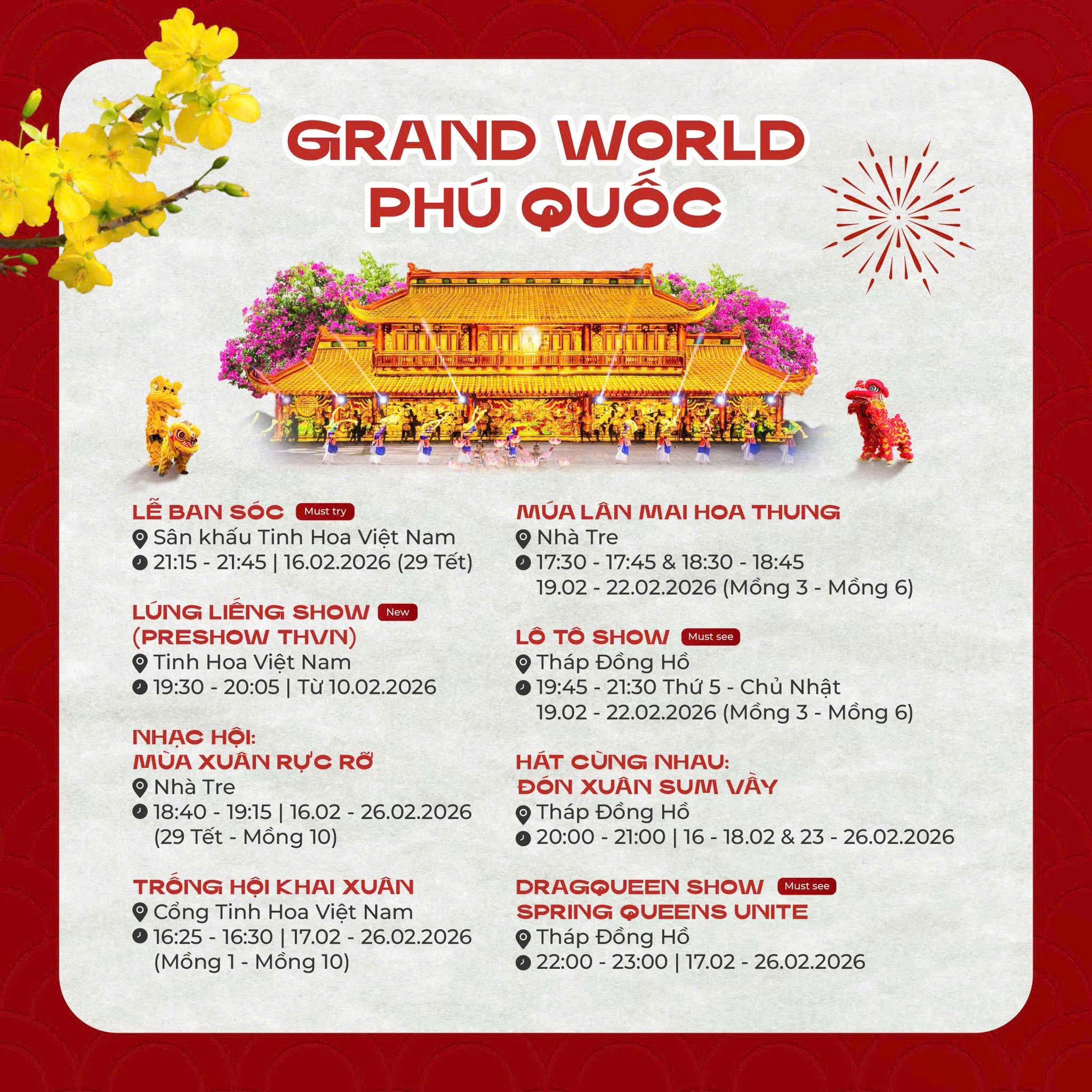 �� Từ Mùng 1 đến Mùng 10 Tết, Phú Quốc mang đến một mùa xuân trọn vẹn: có lễ hội truyền thống, có giải trí hiện đại, có sắc xuân văn hóa và không khí sum vầy – điểm đến lý tưởng cho du khách khởi đầu năm mới đầy hứng khởi và may mắn.