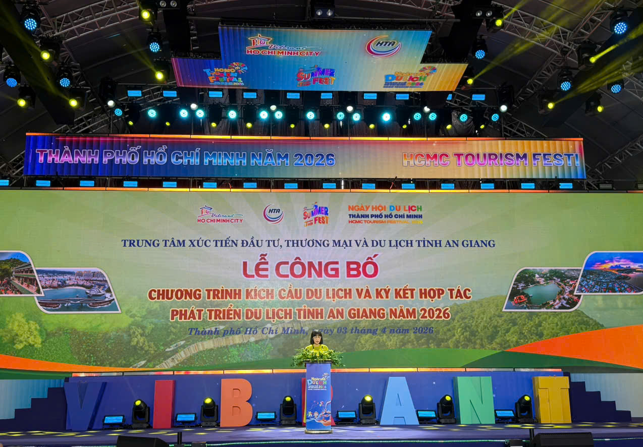 Chiều ngày 03/4/2026, tại Công viên 23/9, phường Bến Thành, thành phố Hồ Chí Minh. Trung tâm Xúc tiến Đầu tư, Thương mại và Du lịch tỉnh An Giang đã tổ chức Lễ công bố Chương trình kích cầu du lịch và ký kết hợp tác phát triển du lịch năm 2026, trong khuôn khổ Ngày hội Du lịch Thành phố Hồ Chí Minh lần thứ 22. Sự kiện thu hút khoảng 100 đại biểu là đại diện Sở Văn hóa, Thể thao và Du lịch; Sở Du lịch; Trung tâm Xúc tiến Đầu tư, Thương mại và Du lịch; Trung tâm Xúc tiến Du lịch các tỉnh, thành phố, Hiệp hội Du lịch ĐBSCL, thành phố Hồ Chí Minh và doanh nghiệp lữ hành, khu – điểm du lịch và cơ quan truyền thông trong cả nước.