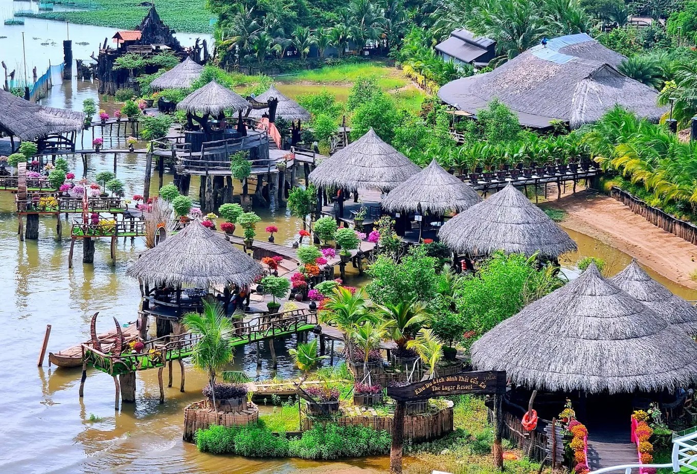 Nơi đây được mệnh danh là “thế giới” của gỗ trầm thủy. Bởi, điểm độc đáo ở đây là hầu hết các hạng mục được làm từ gỗ lũa. Đó là những khúc gỗ chìm dưới đáy sông lâu năm, bị bào mòn phần vỏ, chỉ còn lại phần lõi. Các nghệ nhân khéo tay đã chế tác những khúc gỗ thành các tác phẩm nghệ thuật đặc sắc, tiêu biểu như các mô hình cầu ván, du thuyền, lều trại và nhiều pho tượng…